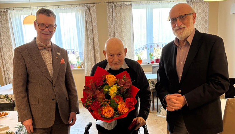 Profesor Honorowy SGH dr Tadeusz Stępień z odznaką „Zasłużony dla Szkoły Głównej Handlowej w Warszawie”