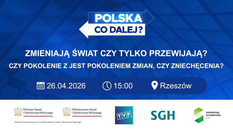 Zapraszamy na trzeci wyjazdowy odcinek cyklu debat „Polska. Co dalej?”. Tym razem przeniesiemy się na południe Polski - do Rzeszowa! Debata realizowana jest we współpracy z Telewizją Polską S.A.